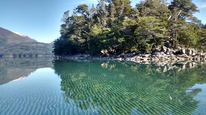 Del otro lado del lago, el recorrido es de aprox. 90 minutos y se visita un bosque natural de cipreses que en épocas pasadas se derrumbó de las faldas del Cº Bayo y se asentó en el lecho del lago. Árboles de más de 20 mts. hoy yacen en las profundidades asomando solo sus puntas. Numerosos grupos de buceo eligen este lugar para descender y hacer un paseo subacuático. Más adelante se llega a las grutas naturales del Lago Traful, en una de ellas y engalanada por una amplia variedad de flores silvestres, sobresale la estatua de la virgen Stella Maris (Patrona de los pescadores).